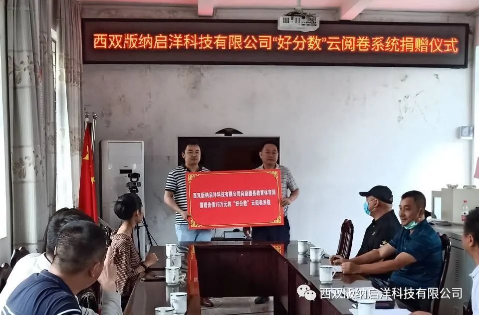 2020年4月24日,西双版纳启洋科技有限公司向勐腊县教育体育局捐赠了一套价值15万元“好分数”阅卷系统。